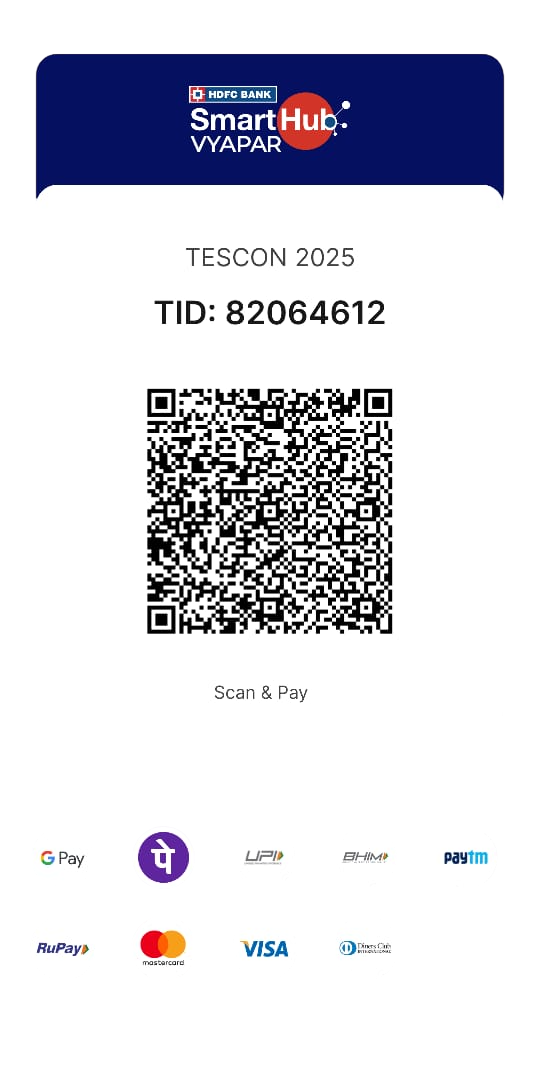 Greetings from TESCON 2025. Please scan the QR with cards and UPI to complete your payment.